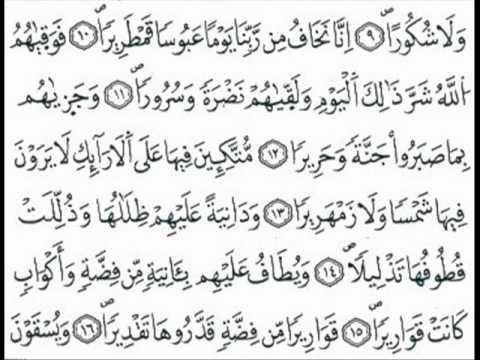 سورة الانسان مكررة كل أية ثلاث مرات بصوت الشيخ الحصري المصحف المعلم Youtube